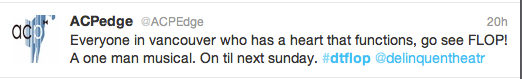 The reviews are in, and FLOP! seems to be anything but. The Georgia Straight‘s Colin Thomas calls it the “future of Vancouver theatre”.